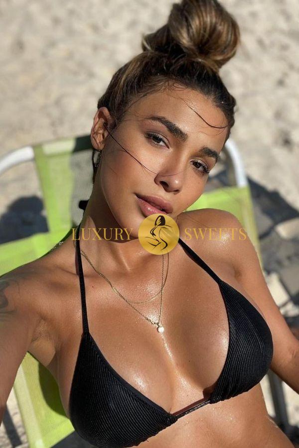 Have you ever had dreams of dating a Brazilian super model? Well, if you take Eduarda out on a date, then you can turn those fantasies into a reality! Eduarda may only be 21-years-old, but she certainly has the experience needed to charm all of her clients who are looking for sexy escorts in Doha . Eduarda has a charming face with long curls of light brown hair and a soft well-rounded face. She big brown eyes, that she highlights with her smoky makeup, that practically scream "come hither", and deliciously round lips that you will just long to kiss. If she gives you permission to do this, be sure to worship her swan-like neck as well as her face, as Eduarda will simply adore the attention and compliments that you flatter her with, whether they are at the start of the date or when you are becoming more intimate with each other. If you are ready to see how gorgeous Eduarda's body truly is, just wait till you see it in some of her sexy lingerie or in a bikini. She has a tiny waist and a beautiful set of breasts that look fantastic in any tight outfit. Who could also forget that she also has a wonderfully perky ass, one that looks great whether she is in a thong or in a very tiny skirt? Eduarda loves being able to dress up in a varied array of outfits and even may be willing to dress up for a roleplay situation if you have been an exceptionally good boy - she certainly isn't shy when it comes to pleasing her clients. If you are ready to meet Eduarda for a date then feel free to contact Luxury Sweets to arrange it. We look forward to hearing from you soon to book a charming companion like Eduarda in Qatar.